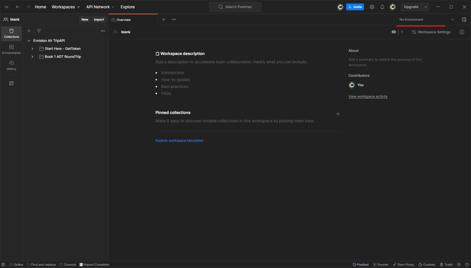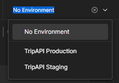 Após importar a collection/environments, o próximo passo é selecionar o ambiente em que vamos fazer as requisições.